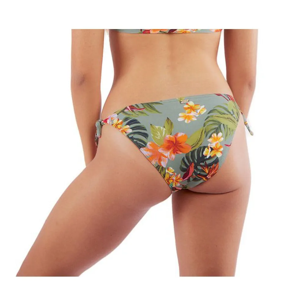 Exotic print khaki swimwear stockings MIKTA AYANNA from the summer 2021 collection Banana Moon. Fall for this comfortable and very pretty panty! With its exotic print on a khaki background and its adjustable bows on the sides, it gives you a feminine and summery look. Pair it with the TOUHO AYANNA top.
