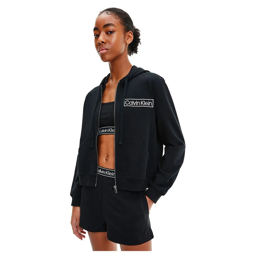 Long sleeves hoodie with zip in mezclum of cotton, polyester and elastane and Calvin Klein logo on the chest.