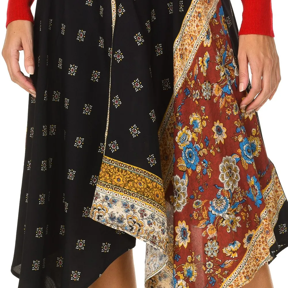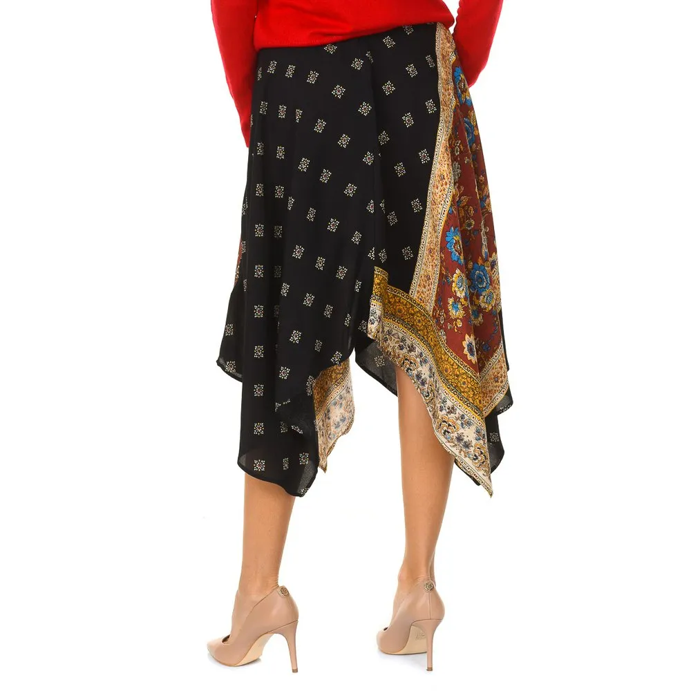 Asymmetric cut skirt.