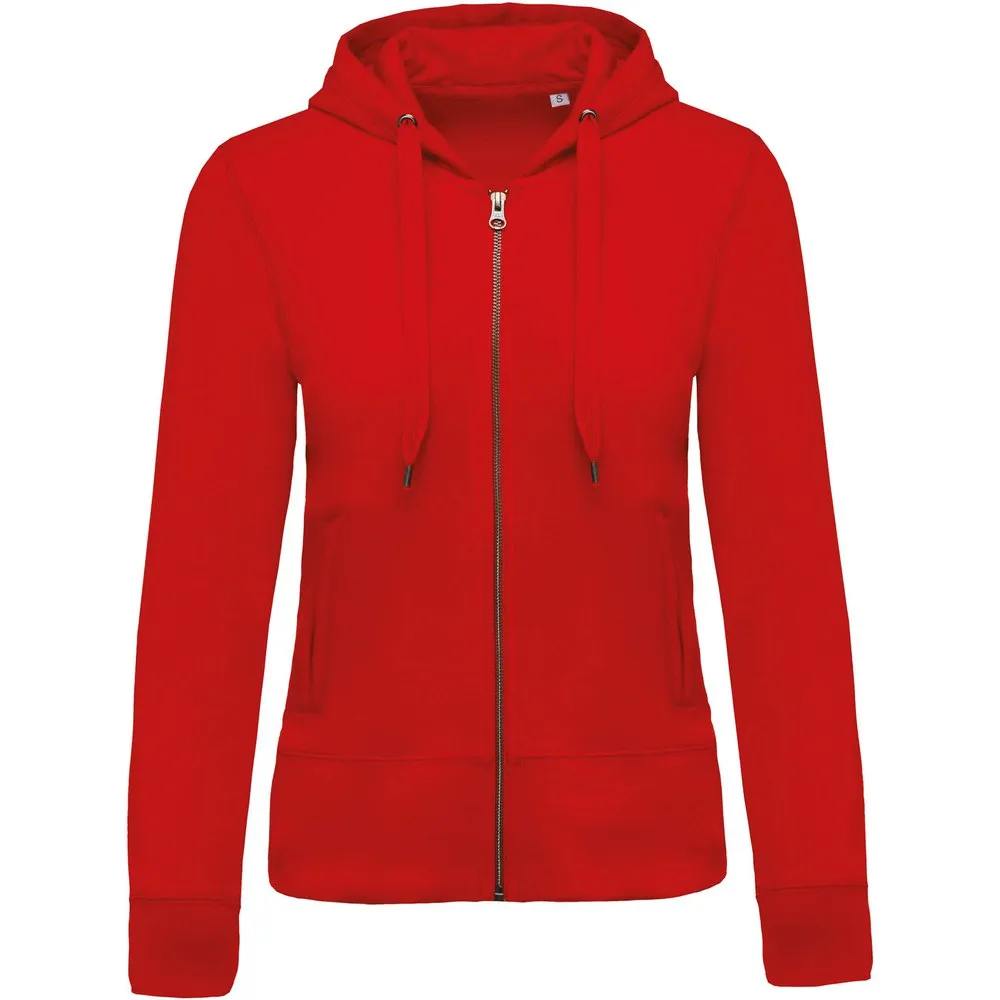 80% organic cotton / 20% polyester OCS Blended controlled by Ecocert Greenlife. Fleece brushed. LSF (Low Shrinkage Fleece). Fashionable and fitted cut. 2 piped pockets on the front. Metal zip fastening. Ribbing on bottom sleeves, garment and hood lined with toned-in drawcord. Herringbone inside collar. Thread loop on front pocket and collar. No branded label on collar, only a size chip for easy customization.