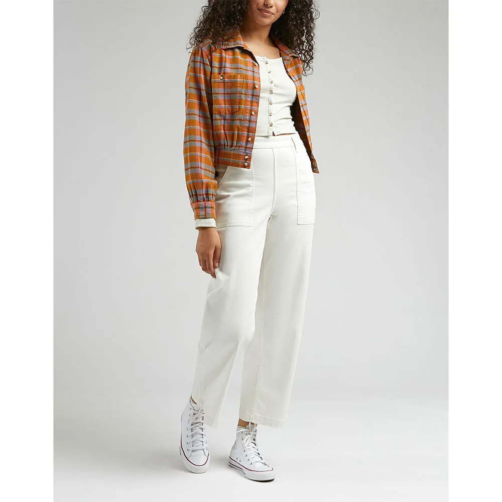 Looking for something a little bit different? Try this boxy button down shirt that adds an outerwear style waistband to its hem, which cuts just above the waist.