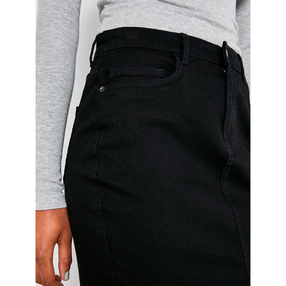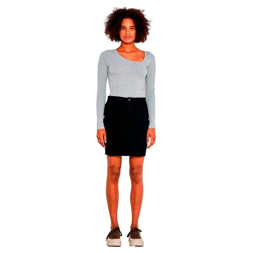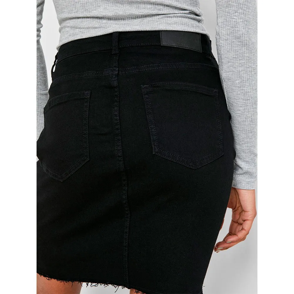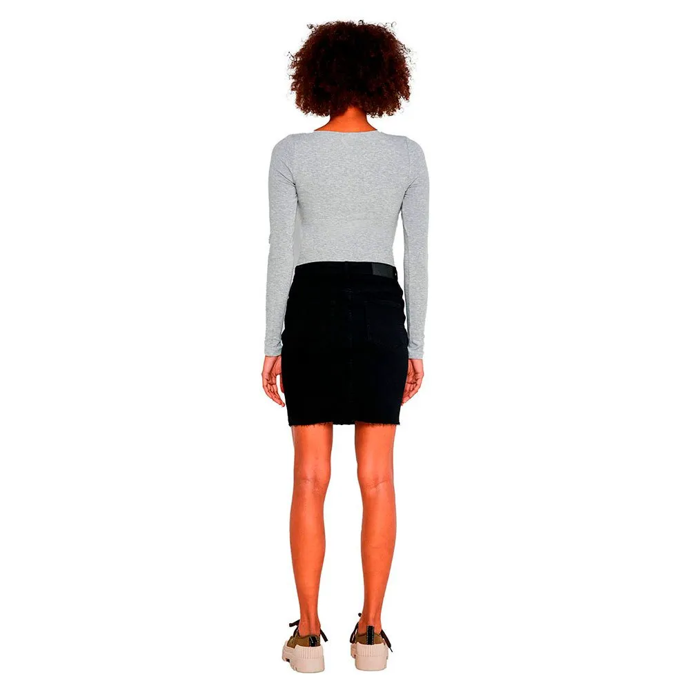Slim fit short denim skirt.