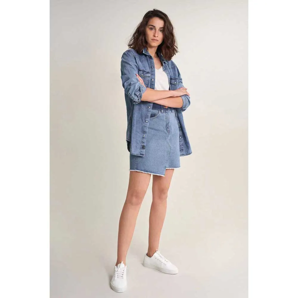 Push In Secret Glamour Contrast Denim Mini Skirt