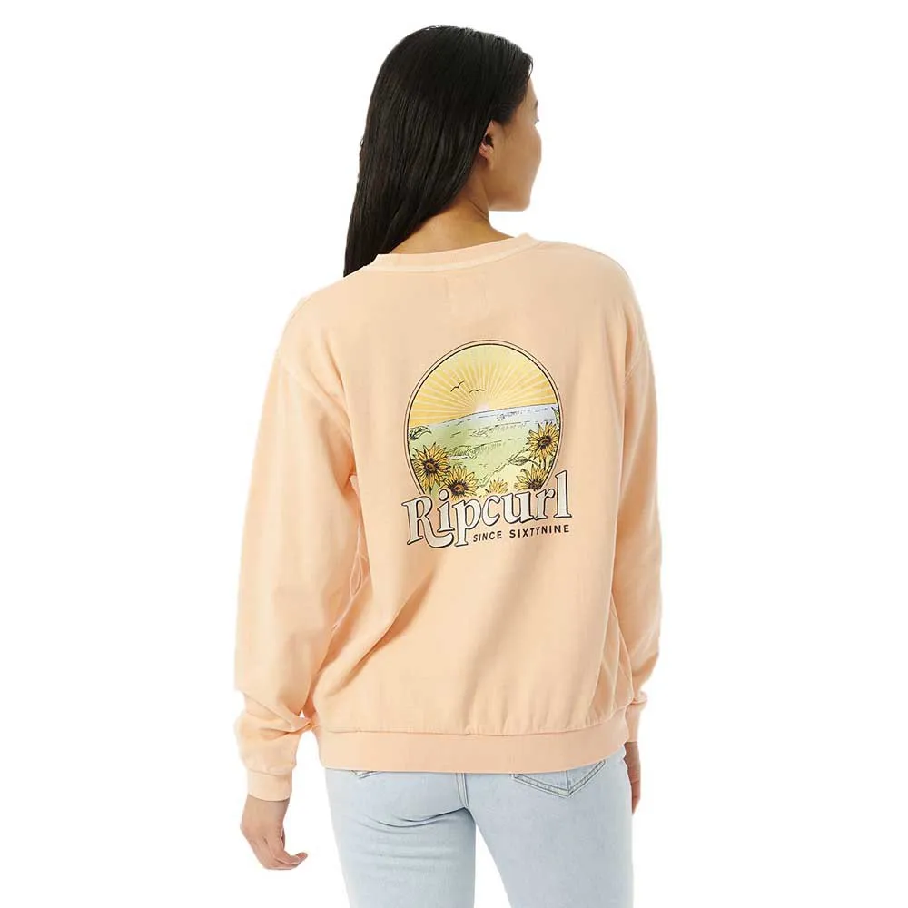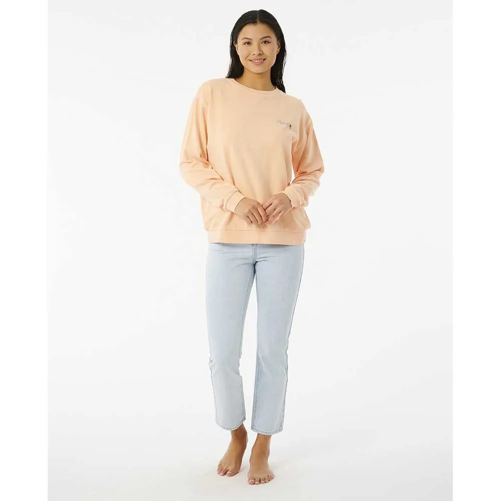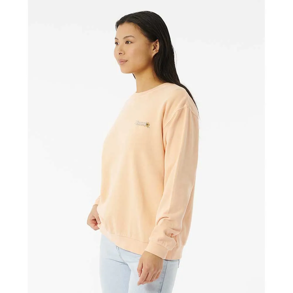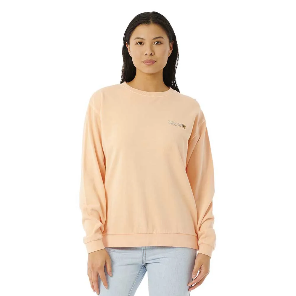 Be ready for any occasion with the Golden Hour Relaxed Crew. The women´s relaxed fit pullover is crafted from cotton fleece 280G and garment pigment dye with a heavy enzyme wash for an unmistakable look and feel. Featuring a front and back print with a branded clamp label, this crew is perfect for any casual day or night. Experience all-day comfort and style with the Golden Hour Relaxed Crew.