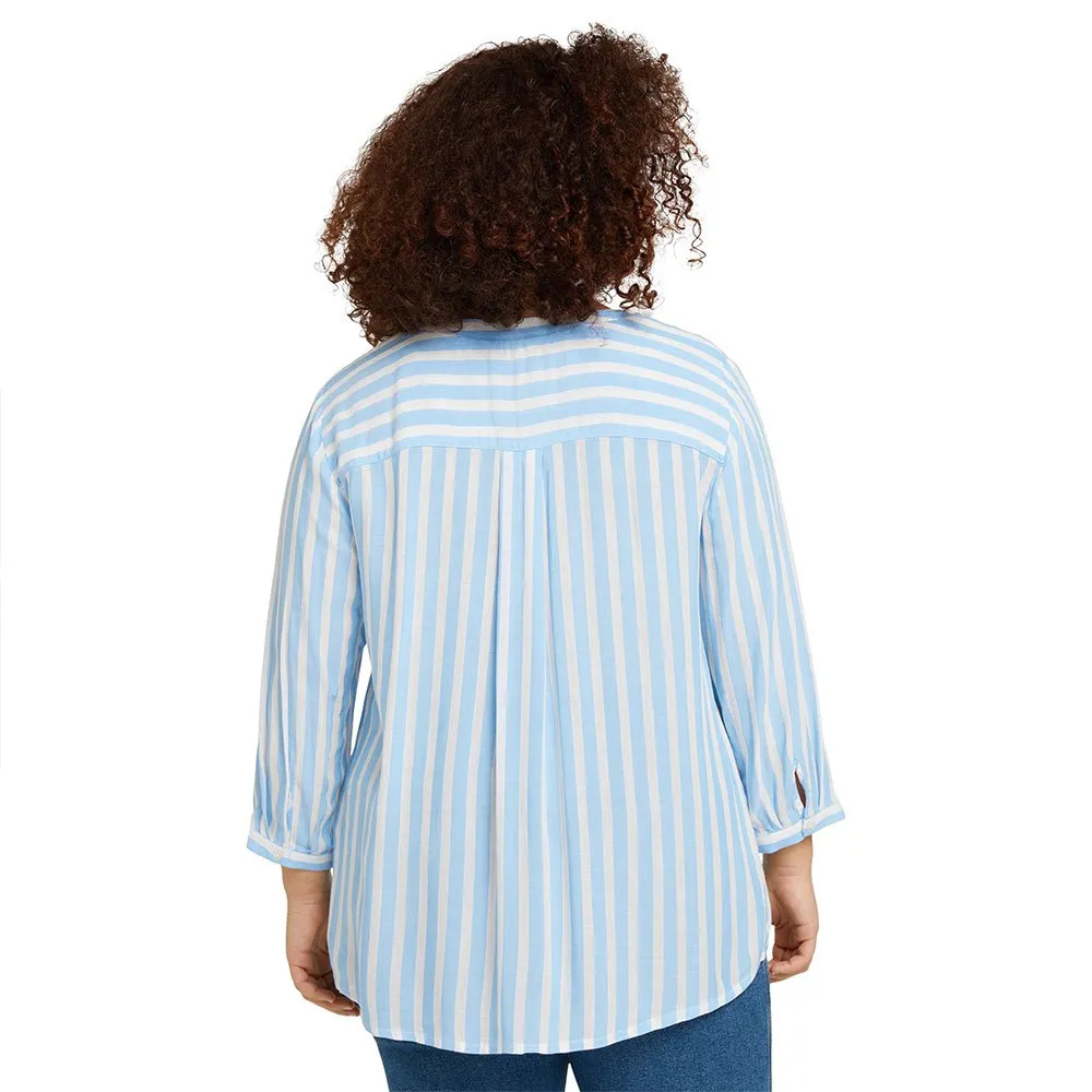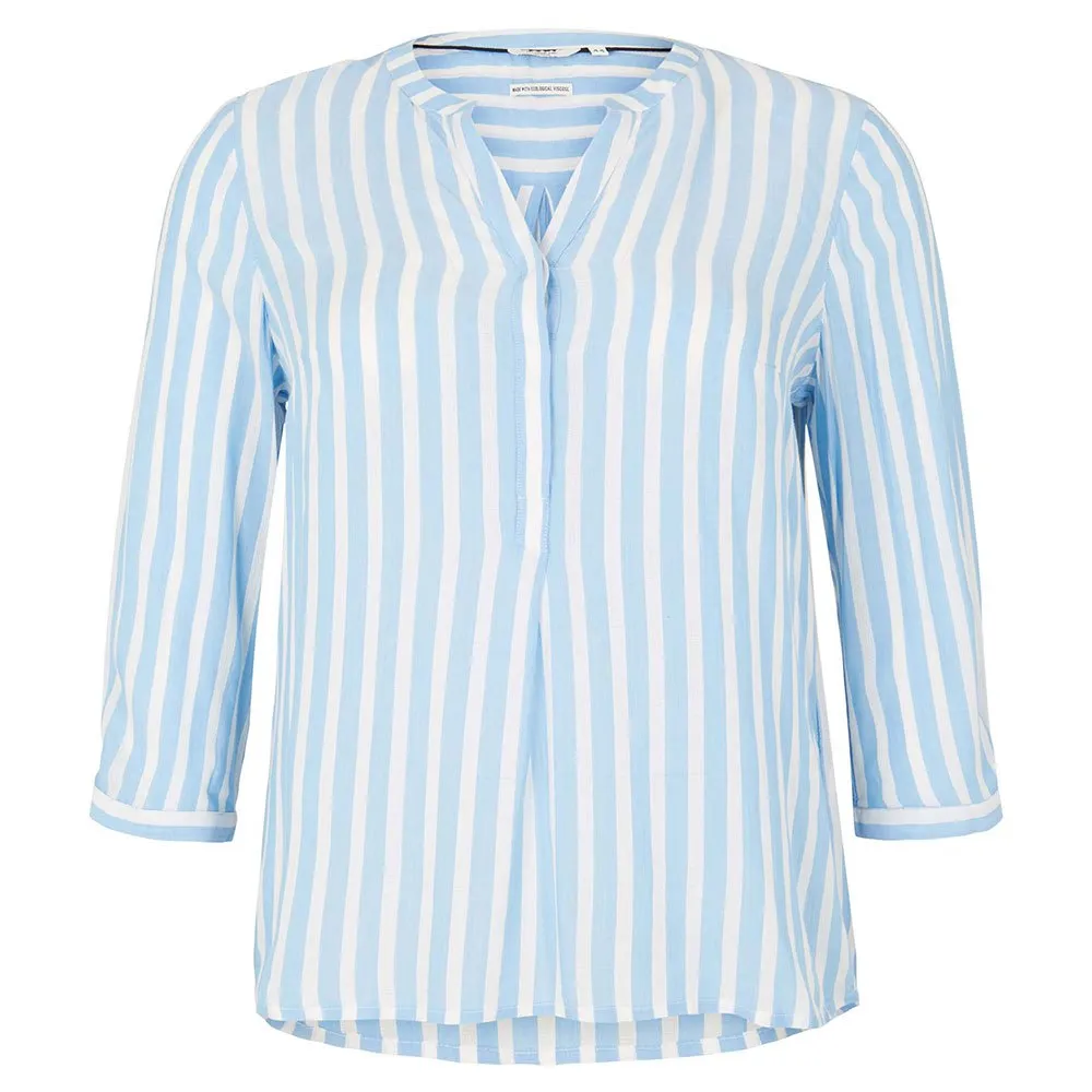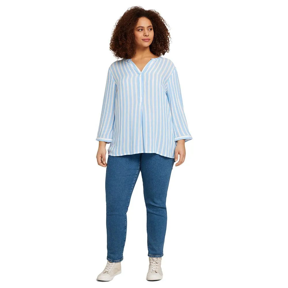 – Plus – a striped henley blouse with LENZING (TM) ECOVERO (TM).