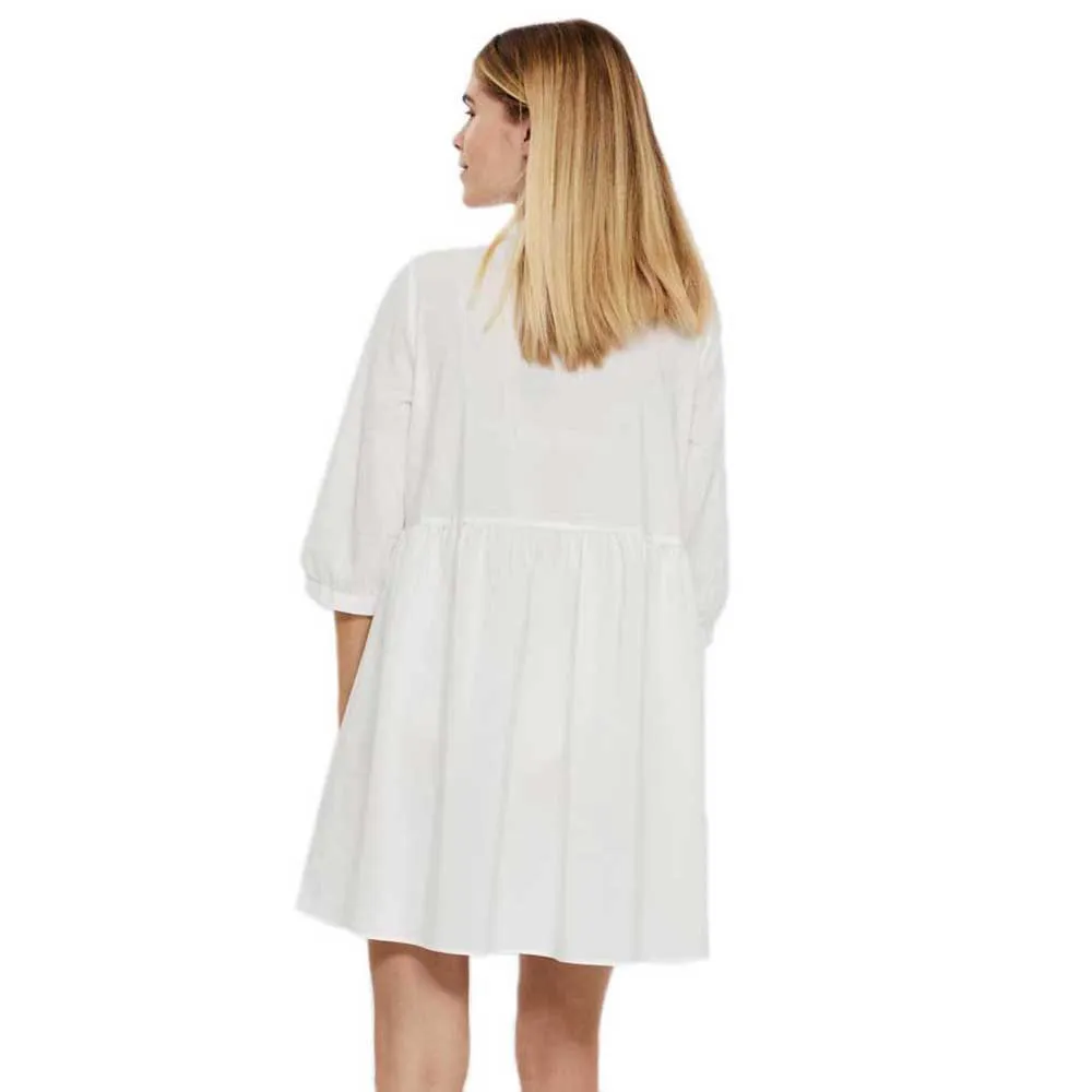Oversize woven shirt dress with 3/4 sleeves and hemmed cuffs. This shirt is perfect for everyday wear. Style it with a pair of tights and some cool boots for a breezy spring look.